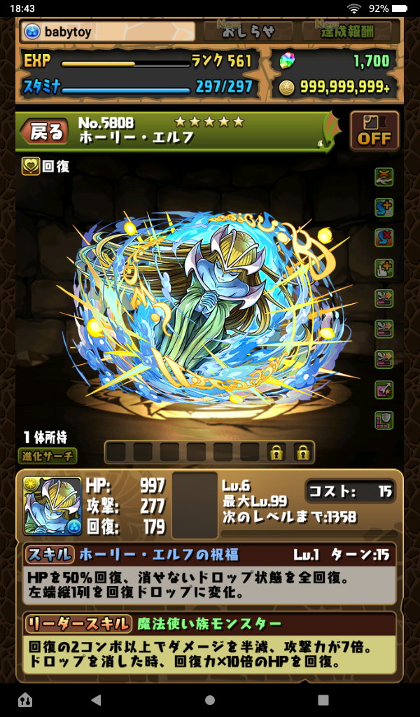 スキル ホーリー・エルフの祝福 Lv.1 ターン:15