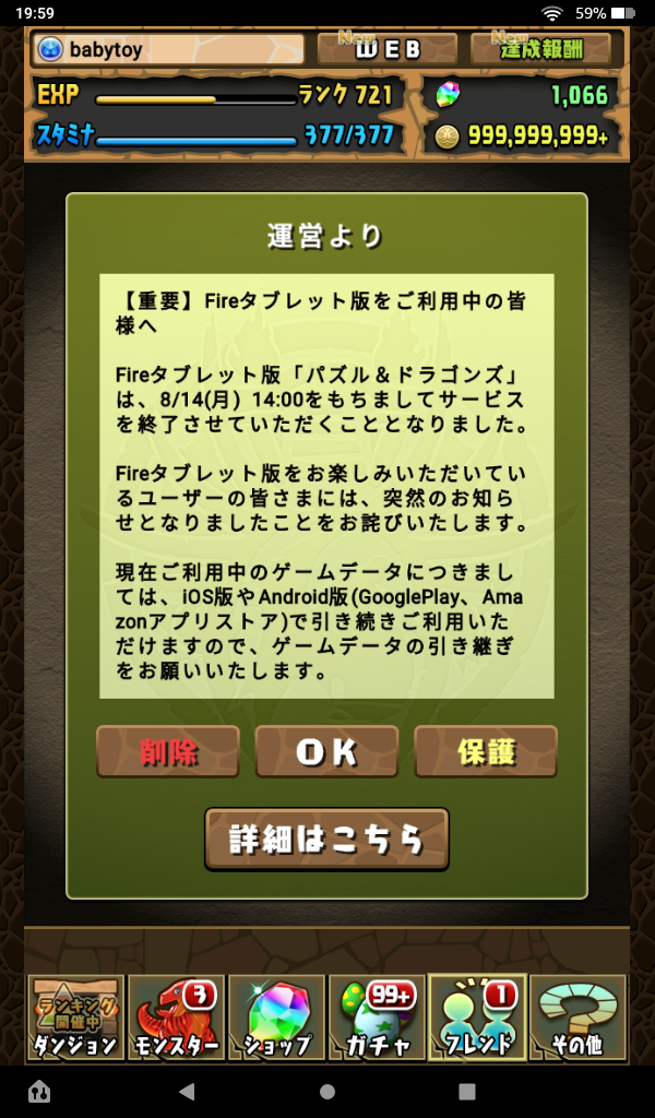 私もパズドラをKindle Fireでプレイしてきましたが、スマホへの引き継ぎはしないで、ここでやめようと思います。
